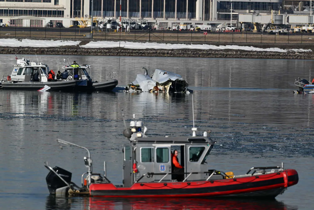 The UH-60 Black Hawk helicopter collided with American Airlines Flight 5342, which was on final approach to Runway 33 at Reagan National Airport around 8:47 PM (local time). The passenger jet, which had departed from Wichita, Kansas, and the military aircraft both plunged into the icy Potomac River, killing all 67 people on board. Recovery teams have since been working to retrieve the bodies of the victims, with no survivors found.
