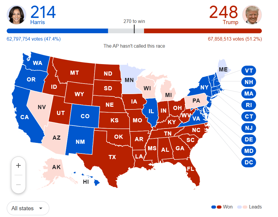 While it remains too early to declare a winner, Trump’s early lead has altered the dynamics of this pivotal race. With key votes still being counted, Americans and the world are watching closely to see if Trump can secure another term or if Harris will mount a comeback.