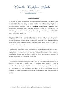 “I state without equivocation that I have neither contemplated, discussed, nor effected a defection to the APC and, for the avoidance of doubt, I have no intention of ever joining the APC. I remain firmly and unapologetically committed to the Labour Party and the ideals and principles it represents,” Akpata declared.