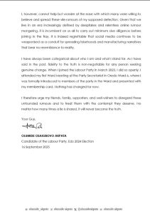 The Labour Party’s governorship candidate in the 2024 Edo State election, Olumide Osaigbovo Akpata, has firmly refuted claims circulating on social media that he has defected to the All Progressives Congress (APC).