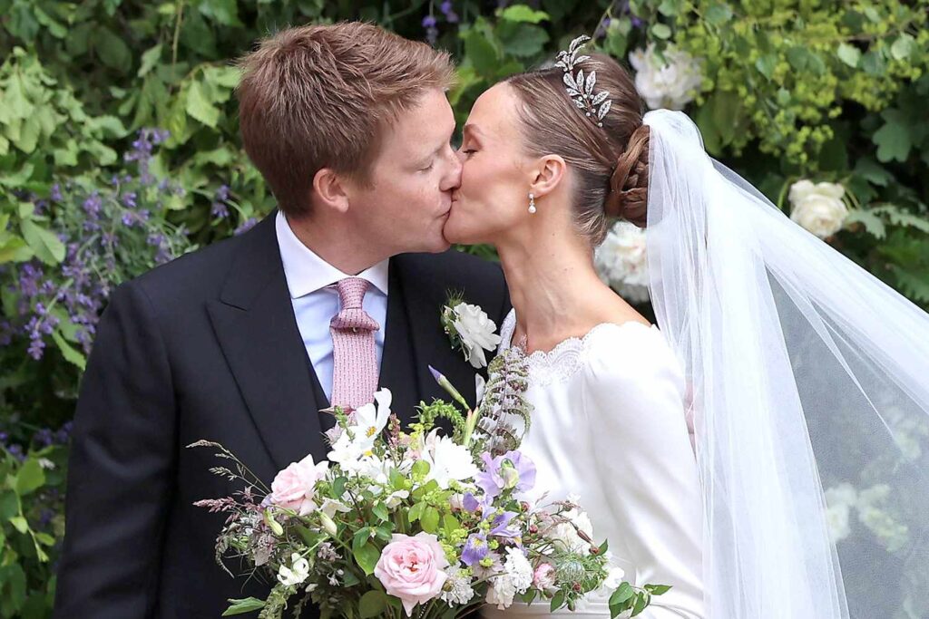 Hugh Grosvenor, Duke of Westminster, and Olivia Grosvenor, Duchess of Westminster, share a kiss after their wedding ceremony at Chester Cathedral on June 7, 2024. Chris Jackson/Getty