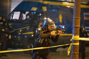 Authorities also reported 692 fires through the night, with 264 cars set ablaze. Flares and fireworks lit up the Paris sky, not just in celebration, but as weapons. Eighteen police officers in Paris sustained injuries, along with three officers in other cities. Firefighters were not spared either; seven were hurt in the violence. Among the most serious cases, a police officer in Normandy was placed in an induced coma after a firework exploded in his eye.