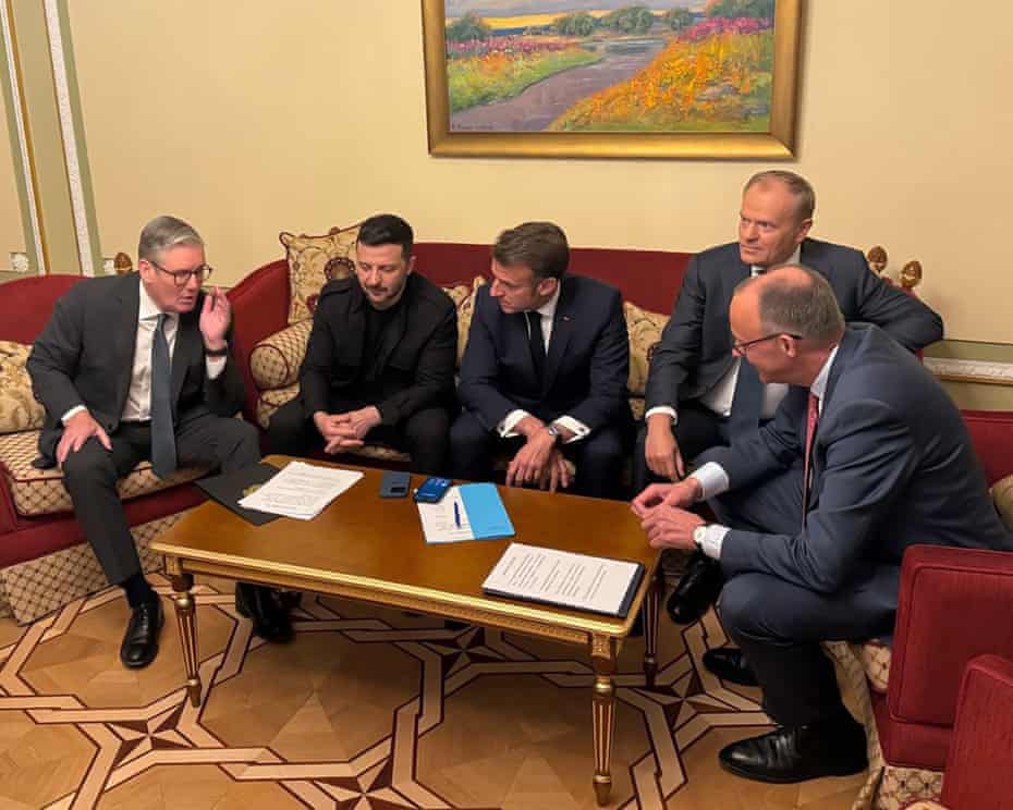 The emergency summit, dubbed the “coalition of the willing,” brought together Starmer, Ukrainian President Volodymyr Zelenskyy, French President Emmanuel Macron, German Chancellor Friedrich Merz, and Polish Prime Minister Donald Tusk for high-stakes talks in central Kyiv. It marked the first visit to Ukraine by Chancellor Merz since assuming office earlier this week and Macron’s first return since summer 2022.